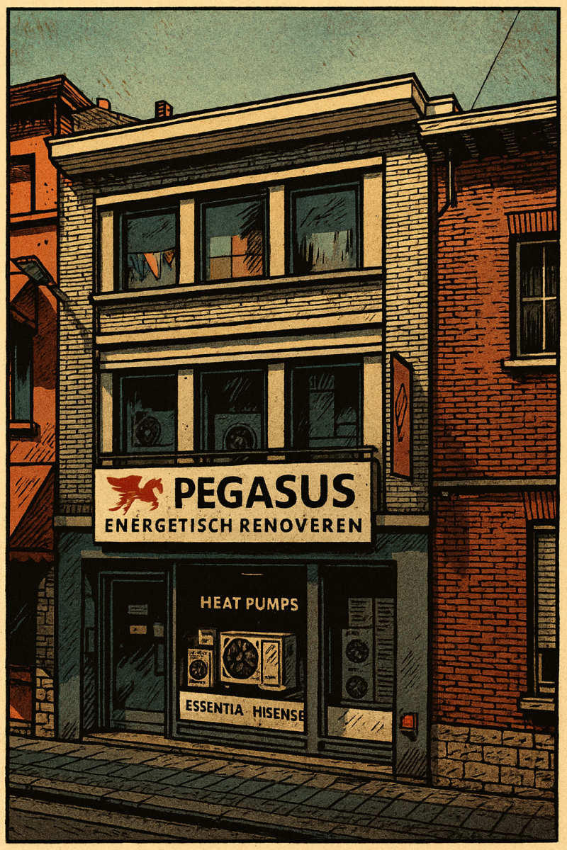 “Bezoek de showroom van PEGASUS Energetisch Renoveren in Krekelput 16, Oudenaarde. Advies over isolatie, ramen, deuren en warmtepompen.